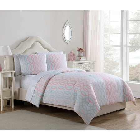 <ul> <li>Super-soft - 100% microfiber</li> <li>Features interlocking designs reminiscent of the infinity symbol</li> <li>Available in a variety of color combinations</li> <li>Includes comforter, shams (one sham for Twin), and sheet set</li> </ul>