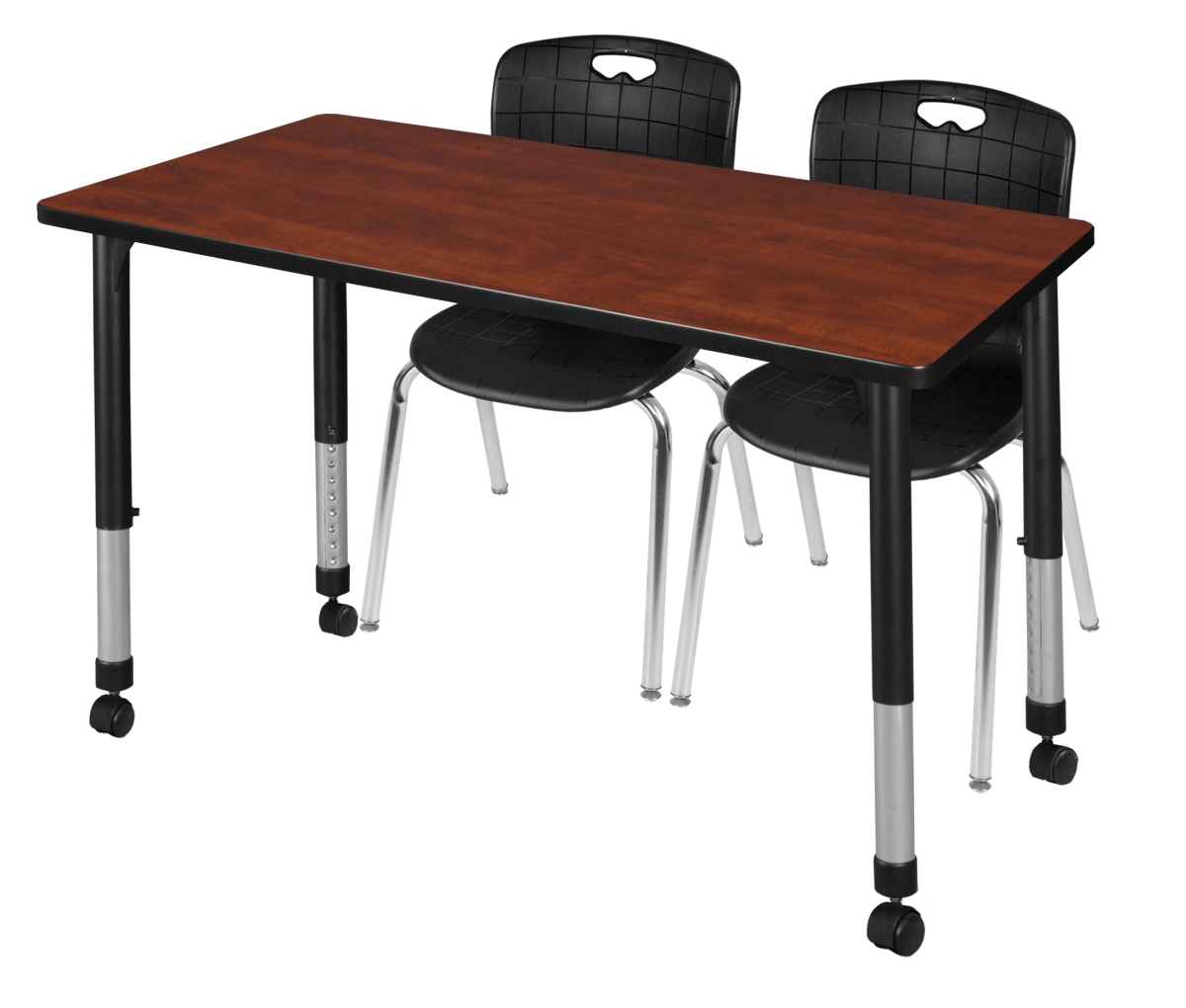 Regency Kee Height Adjustable Mobile Classroom Table Set with two 18"Andy Chairs, 48" x 24", Cherry/Black