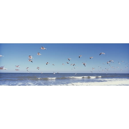 Panoramic Images Stretched Canvas Art - Birds flying over the sea, Flagler Beach, Florida, USA - Large 36 x 12 inch Wall Art Decor Size.