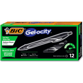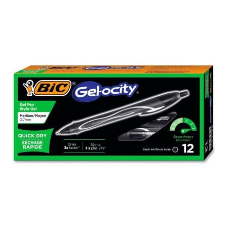 BIC® Gel-ocity Quick Dry Retractable Gel Pen, Medium 0.7mm, Black Ink/Barrel, Dozen
