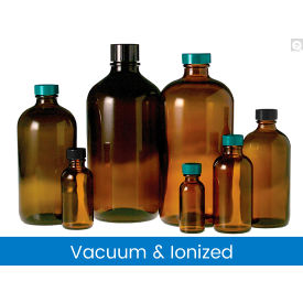 Qorpak GLC-01984 Boston Round Bottle with 28-400 Black Phenolic Polycone Lined Cap Attached, Vacuum and Ionized, 16 oz, Amber (Pack of 60)