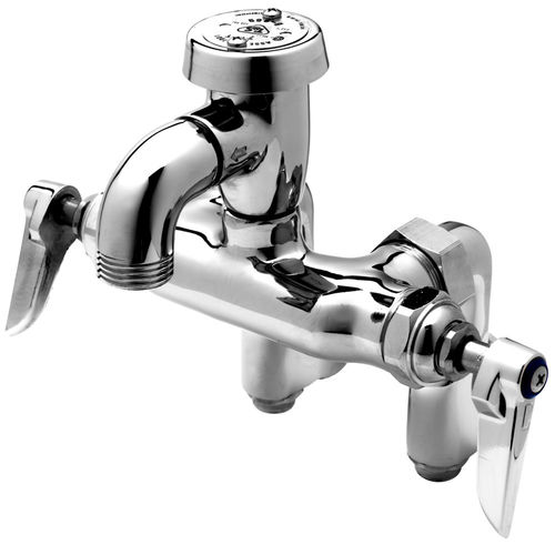 T&S Brass B-0669-01 Service Sink Faucet, Wall Mount, Adjustable Center, Vacuum Breaker, Pail Hook, Integral Stop