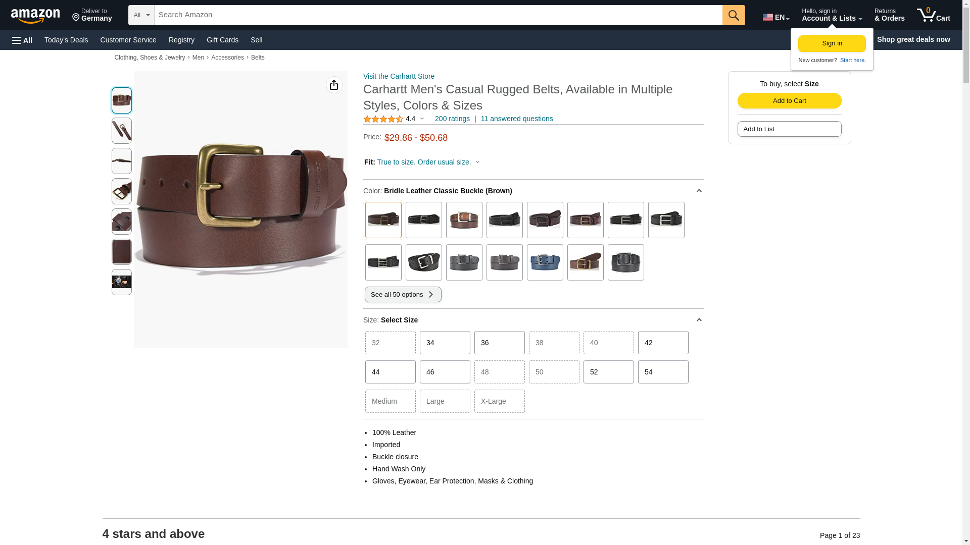 Carhartt Regular Men's Casual Belts, Available in Multiple Styles, Colors & Sizes, Bridle Leather Classic Buckle (Brown), 42