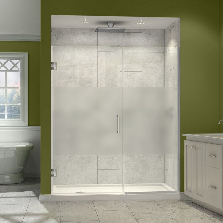 DreamLine Unidoor Plus 29 to 29-1/2"W x 72" H Hinged Shower Door, Half Frosted Glass Door, Oil Rubbed Bronze Finish Hardware