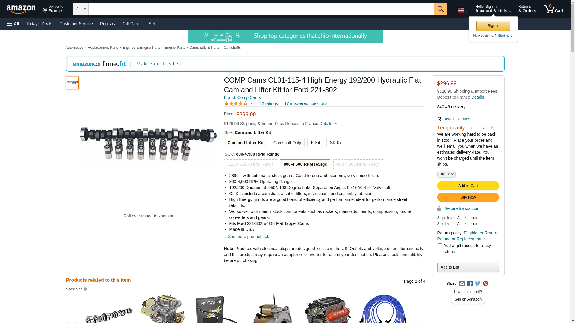 COMP Cams CL31-218-2 High Energy/Marine 218/218 Hydraulic Flat Cam and Lifter Kitfor Ford 221-302
