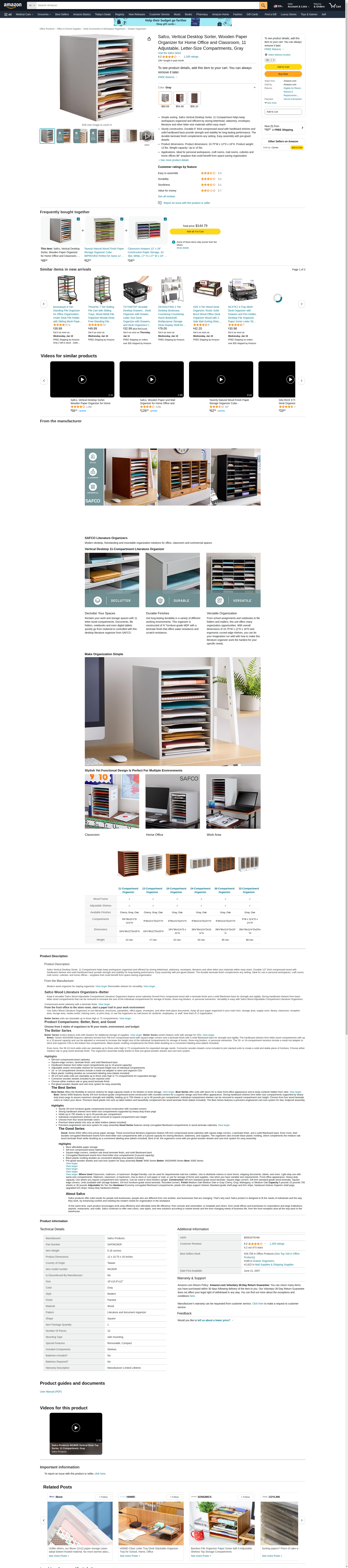 This vertical desktop sorter is compact for maximum desktop organization. Shelves are removable only during assembly so you can customize the compartments. Ten hardboard shelves form up to eleven 9 1/2w x 11 5/8d x 1 1/4h letter size compartments and support up to 15 lbs. each. Made of 1/2" compressed wood with laminate finish; solid fiberboard back. Literature Sorter Type: Open Front; Number of Compartments: 11; Compartment Size: N/A; Material(s): Fiberboard; Hardboard; Laminated Compressed Wood. This supplier will be closed on 11/24, 11/25, 12/23, 12/26, 1/2 for the holidays. The shipping cut off is UPS's cut off of 12/15 to try and have the products delivered by Christmas.