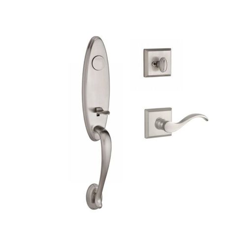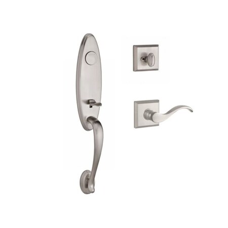 Baldwin Reserve FDCHEXCURLTSR150THK Full Dummy Chesapeake Handleset Left Hand Curve Lever and Traditional Square Rose For Thick Door Satin Nickel Finish