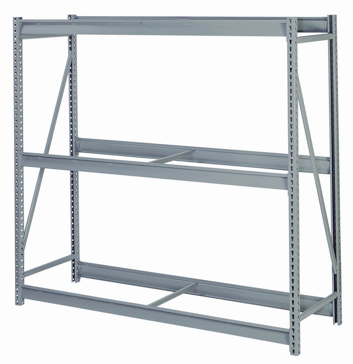 Bulk Storage Rack Width 60 In. Depth 48 In. Height 72 In. Load Capacity 2600 lb. Number of Shelves 3 Capacity per Shelf 900 lb. Beam Capacity 2600 lb. Dove Gray Material Steel Decking Material None Finish Powder Coated Includes (2) Welded Uprights (6) Beams (1) Front To Back Support Per Level