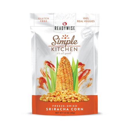 READYWISE - Simple Kitchen, Freeze-Dried Sriracha Corn, Pack of 1, Vegetarian, Gluten Free, Snacks, Corn, Pre Workout, Healthy Snacks, Freeze-dried Corn, Camping, Backpacking, Survival Food