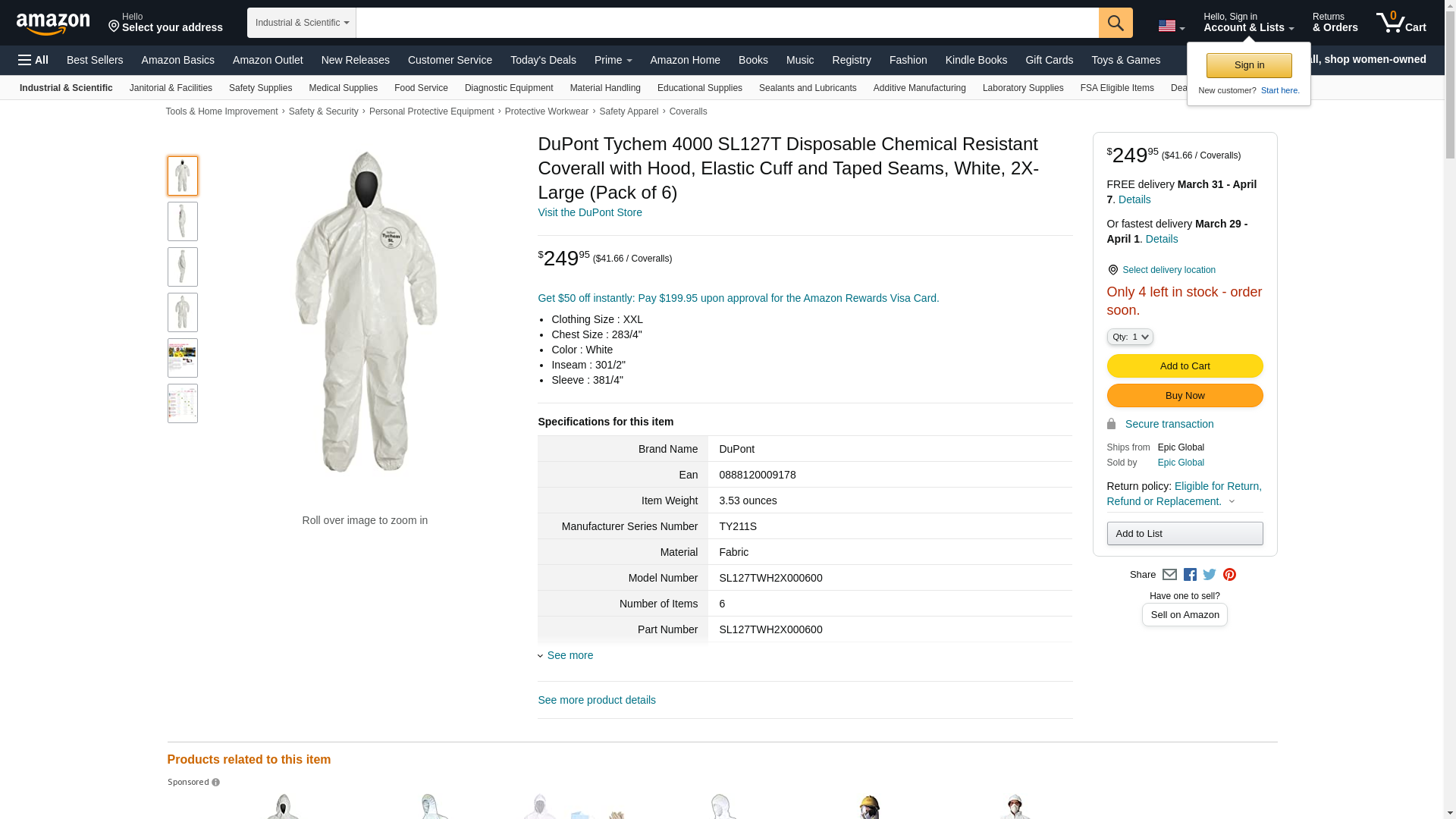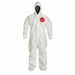 Dupont Tychem 4000 Disposable Chemical Resistant Coverall with Hood, Elastic Cuff and Taped Seams, White, 2X-Large, 6-Pack