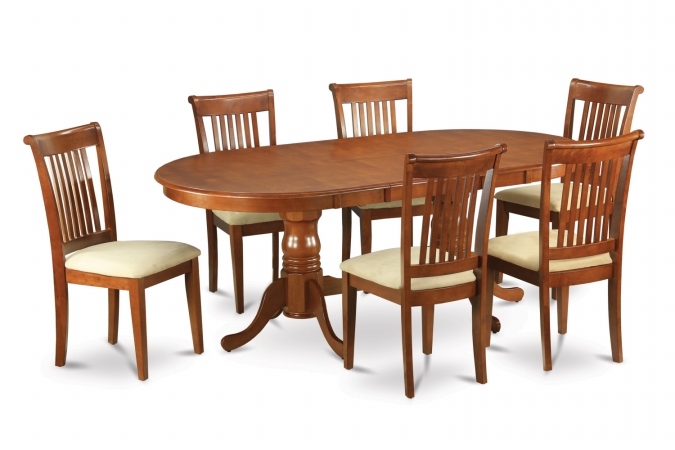 East West Furniture PLPO5-SBR-C 5-Piece Plainville Table with Double Pedestal & 4 Portland Padded Seat Chairs in Saddle