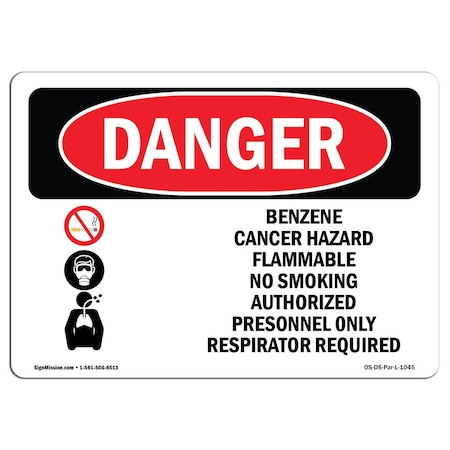 OSHA Danger Sign, Benzene, 14in X 10in Decal