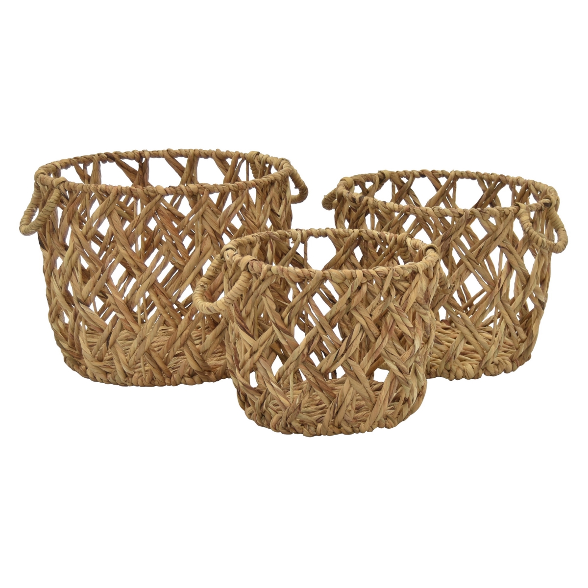 Plutus Brands Brown Waterhyacinth Basket Natural Fiber Set of 3