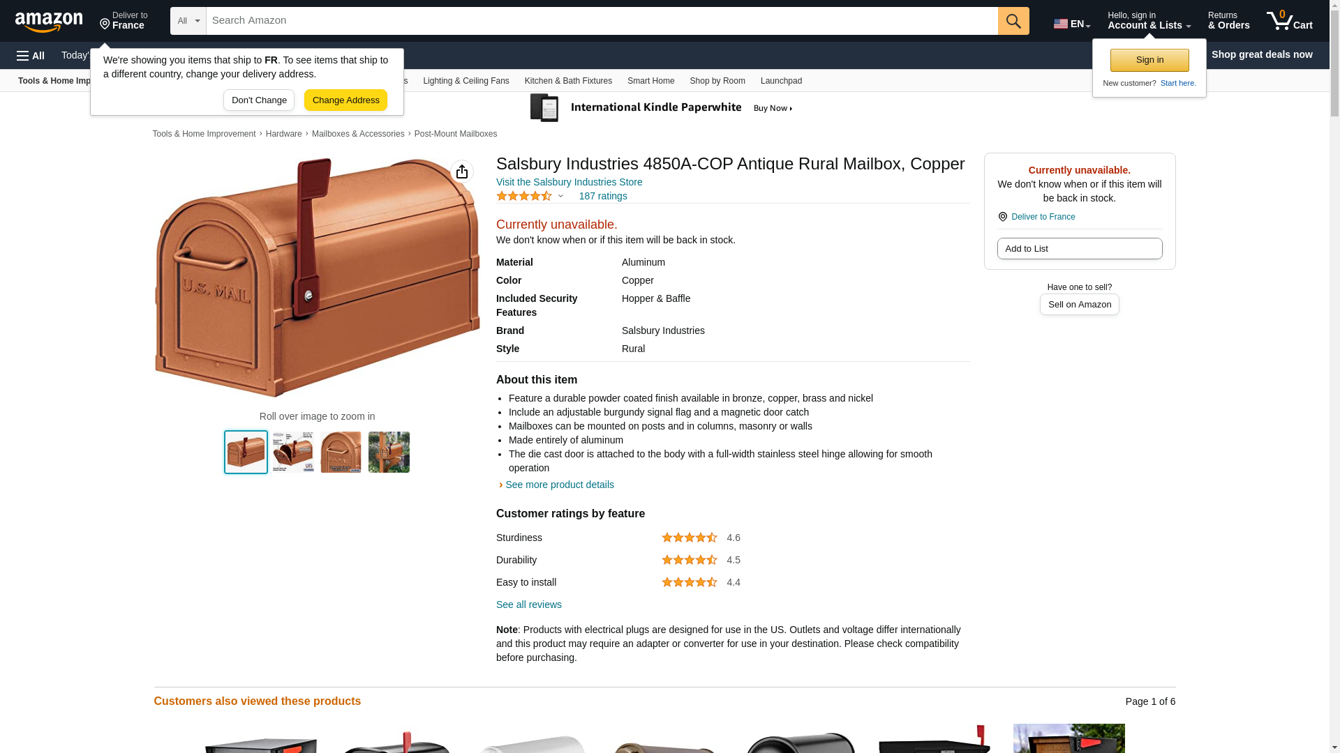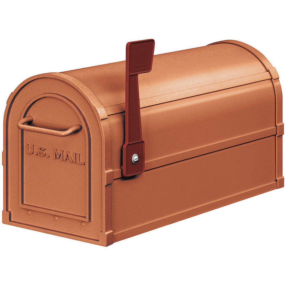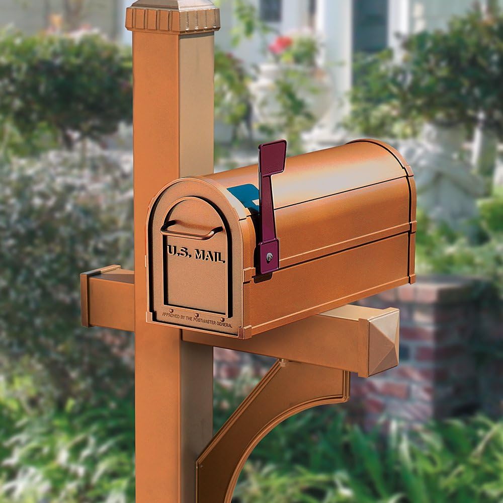 <p>The Salsbury Industries 4800 Series Post-Mount Antique Rural Mailbox features aluminum construction and is rust- and impact resistant for durability. Approved by the Postmaster General, this mailbox comes pre-assembled for easy installation and has a secure magnetic catch and reinforced ridges for strength. This mailbox is a generous size to accommodate letters, magazines and packages, and it has a long-lasting powder-coated finish.</p><ul><li>Generous size accommodates letters, magazines, packages and more</li><li>Dimensions of 7-1/2 in. W x 9-1/2 in. H x 20-1/2 in. D provide ample space</li><li>Secure magnetic catch and reinforced ridges for added strength</li><li>Heavy-duty aluminum construction to withstand impact</li><li>Durable powder-coated finish for long life</li><li>Rust resistant for extended longevity and quality appearance</li><li>Pre-assembled for easy installation</li><li>Approved by the postmaster general</li><li>Dimension - 20.5 x 7.5 x 9.5 in.</li><li>Color Family - Metallic</li><li>Item Weight - 15 lbs</li><li>Color - Copper </li></ul>