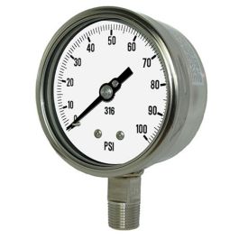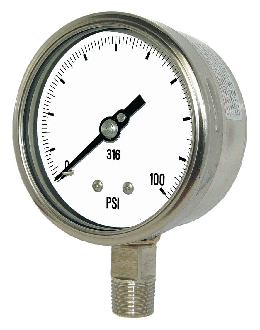 PIC Gauge 4001-4LCC 4" Dial, 30/0/30 psi Range, 1/4" Male NPT Connection Size, Bottom Mount Dry Process Pressure Gauge with a Stainless Steel Case and Internals, Removable Stainless Steel Bezel, and Laminated Safety Glass Lens