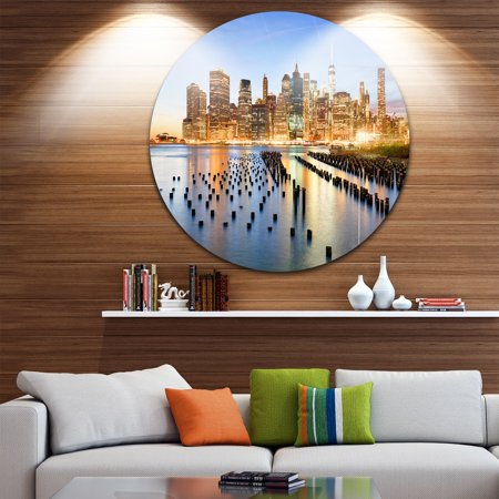 Bring Contemporary Abstraction to your home with this Circle metal wall art. Available in several size, this Modern New York Skyline with Skyscrapers Metal Artwork makes it the focal point of any room or office. <br /> <br /> <b>Features:</b> <br /> <ul> <li>White Gloss Coating ensures colors are extra vibrant with light reflection</li> <li>Aluminum grade sheet metal </li> <li>1-inch mounting frame gives the illusion of artwork floating on the wall</li> <li>Mounting brackets and instructions are included</li> <li>High quality digital images are created directly into a glossy aluminum panel, producing a stunning and captivating print in the glossy finish of the metal</li> <li>Water, fire, and scratch resistant HD aluminum panels</li> <li>Looks better than any photo paper and guaranteed to last at least 20 years</li> <li>Easy to clean with a microfiber cloth</li> <li>Colors are far superior to regular canvas art</li> <li>Easy to hang</li> <li>See Options drop down for available sizes</li> </ul> <br />
