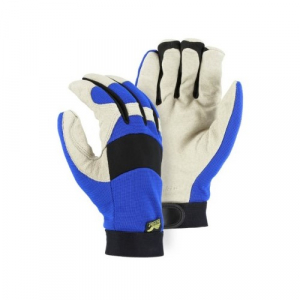 Majestic Glove 2152TW/12 Industrial Glove, Pig Palm, Knit Back, Lined, Waterproof, X2, Size 12, Tan/Blue (Pack of 12)