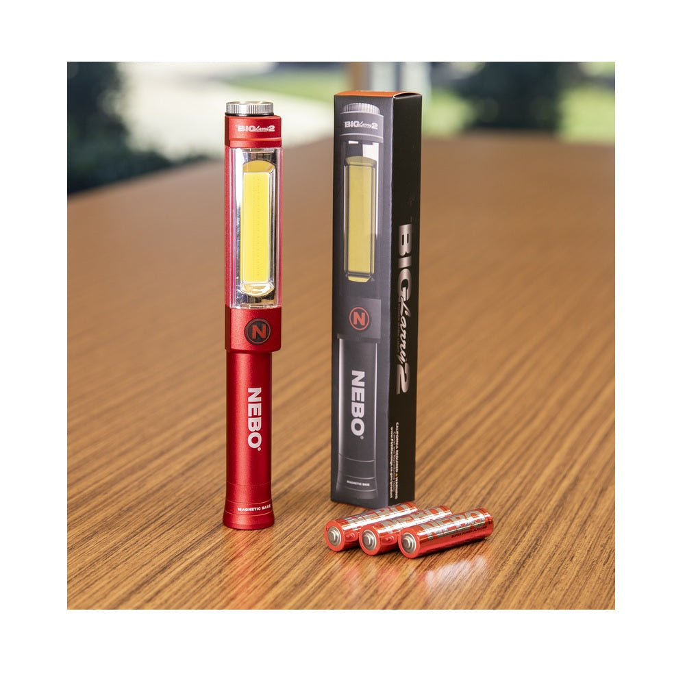 - NEBO BIG LARRY 2 Flashlight: Outputs 500 lumens with COB LED work light and 200 lumens from the top flashlight, Red COB hazard light is perfect for distress signaling or roadside emergencies