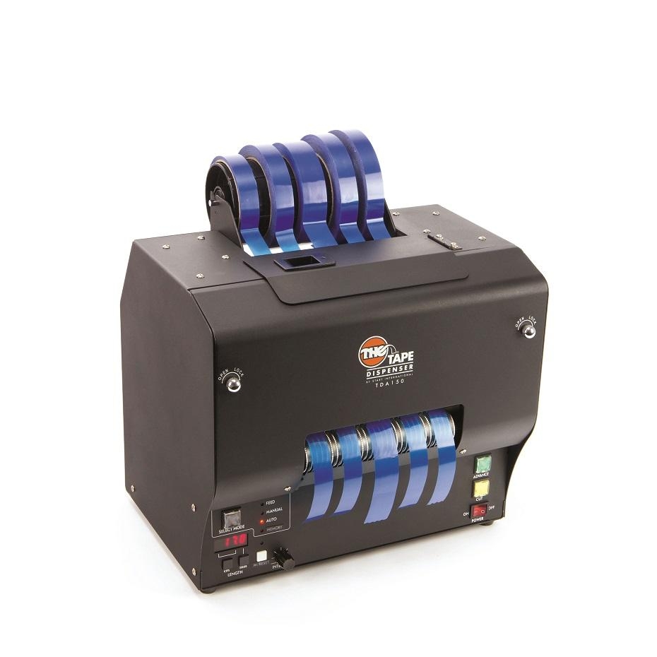 - Electronic tape dispenser automatically advances and cuts wide variety of tapes, including duct tape and some non-adhesive materials for high production applications