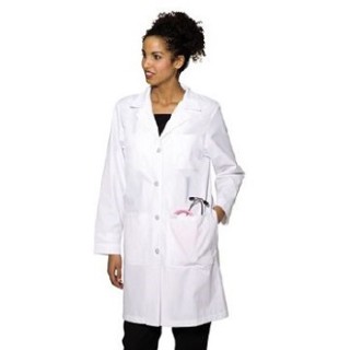 Landau Relaxed Fit 5-Pocket 4-Button Full-Length Lab Coat for Women 3153 White Twill 8