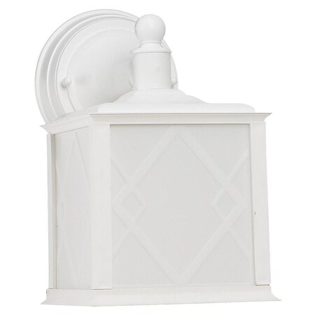 Sea Gull Lighting 88198BLE-15 Harbor Point - One Light Outdoor Wall Mount, White Finish with White Hatch Pattern Glass