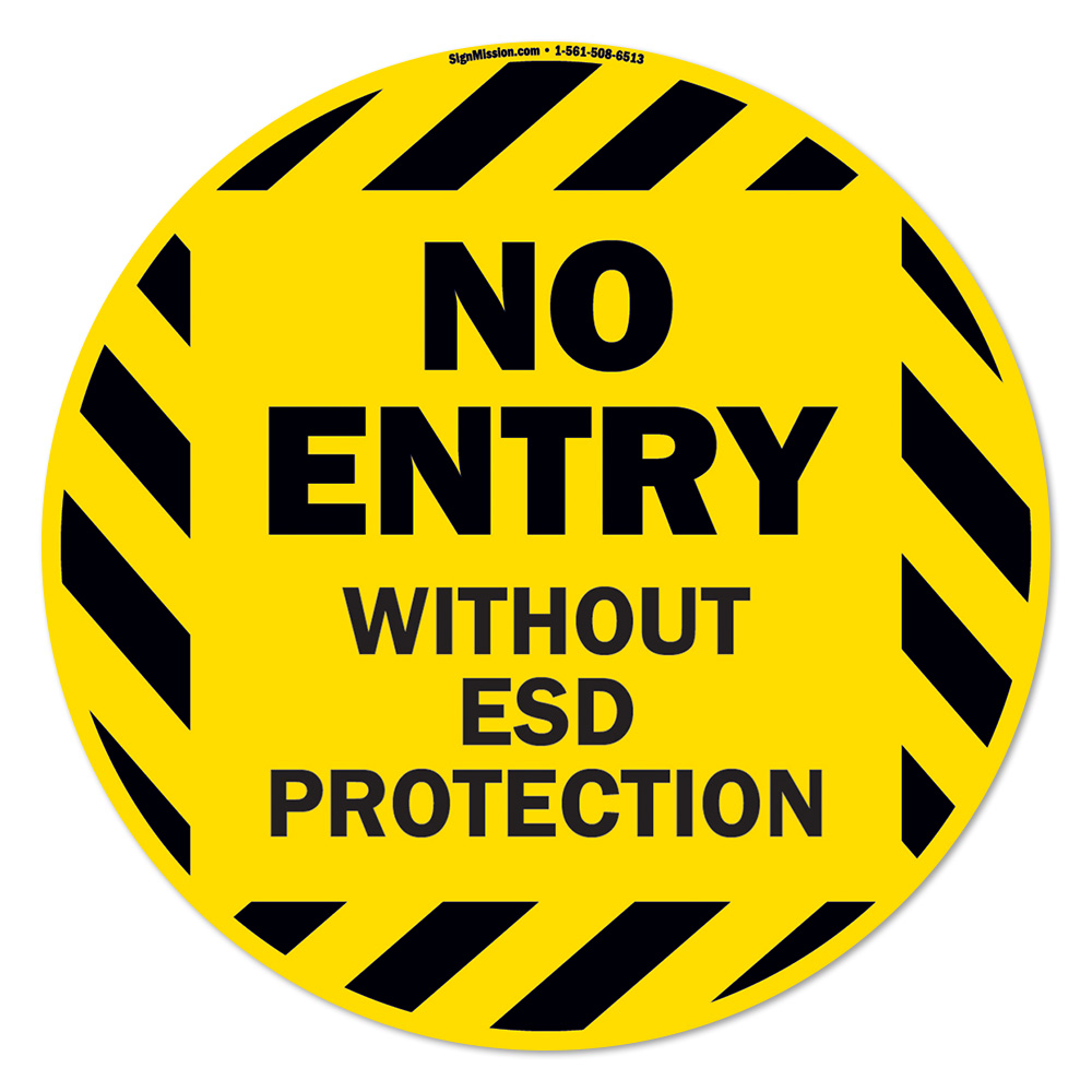 No Entry Without ESD Protection Non-Slip Floor Marker | 16" Circle Floor Marker Vinyl Decal| Protect Your Business, Work Place & Customers | Made in The USA