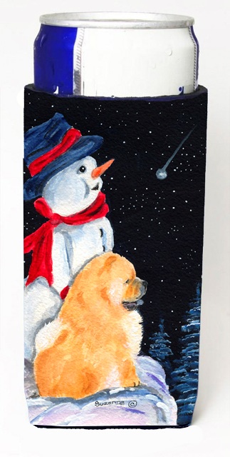 Caroline's Treasures SS8554MUK Snowman with Chow Chow Ultra Hugger for slim cans Can Cooler Sleeve Hugger Machine Washable Drink Sleeve Hugger Collapsible Insulator Beverage Insulated Holder
