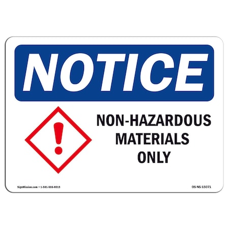 OSHA Notice Sign, Non-Hazardous Materials Only, 10in X 7in Decal