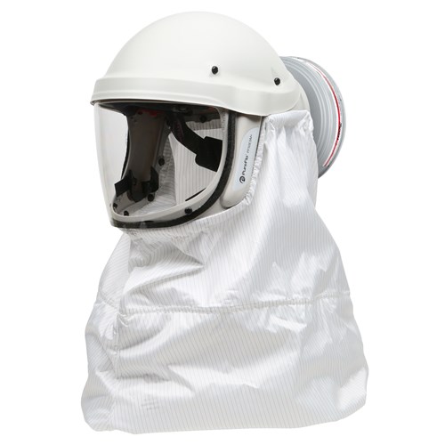 PureFlo PR05802-G-0C3-NBC PF50ESM+ is a self-contained head mounted powered air purifying respirator (PAPR) designed for light duty industries including pharmaceutical, chemical, laboratory and healthcare.