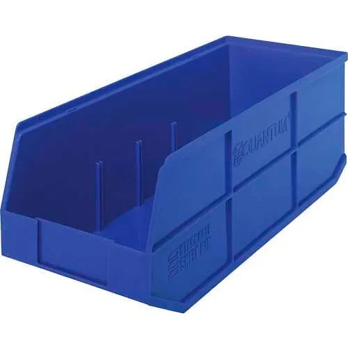 Quantum Plastic Stackable Shelf Bin SSB483 8-1/4"W x 20-1/2"D x 7"H, Blue - Pkg Qty 6