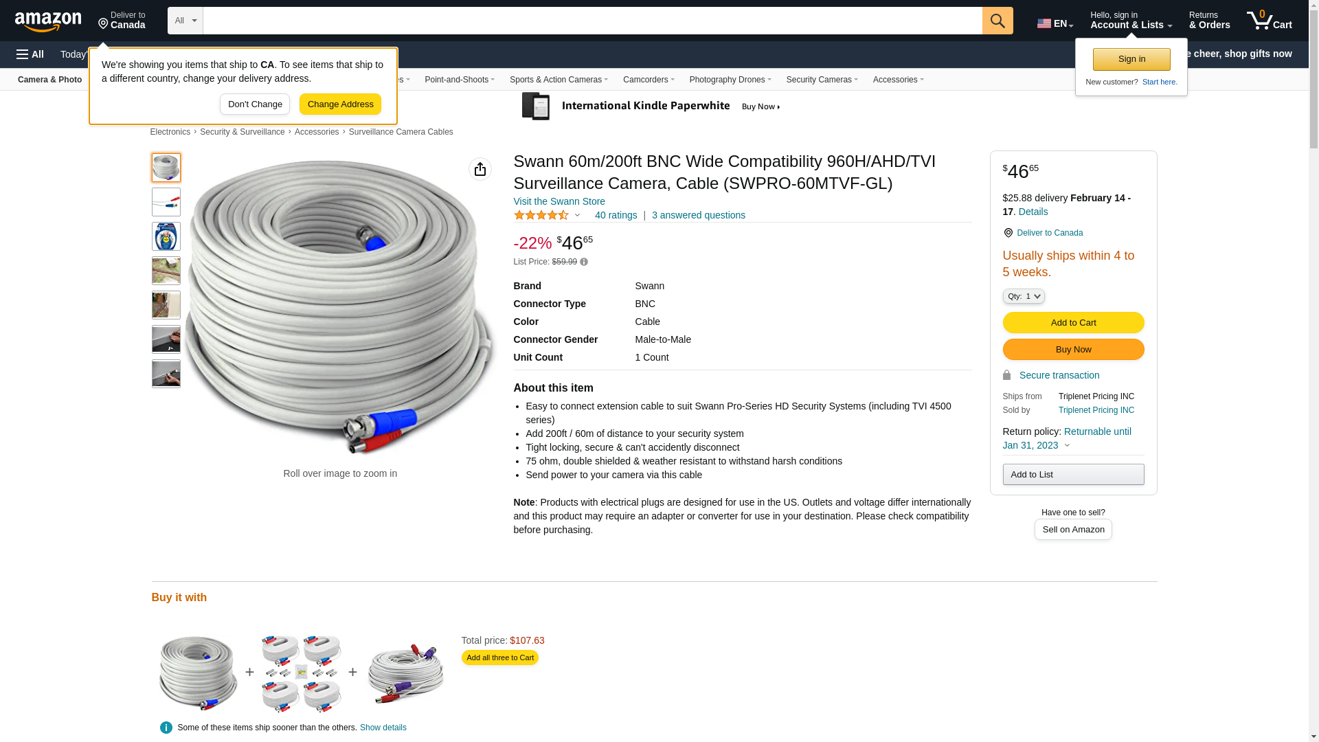 Swann 200' BNC Video/Power Camera Extension Cable White SWPRO-60MTVF-GL - Best Buy