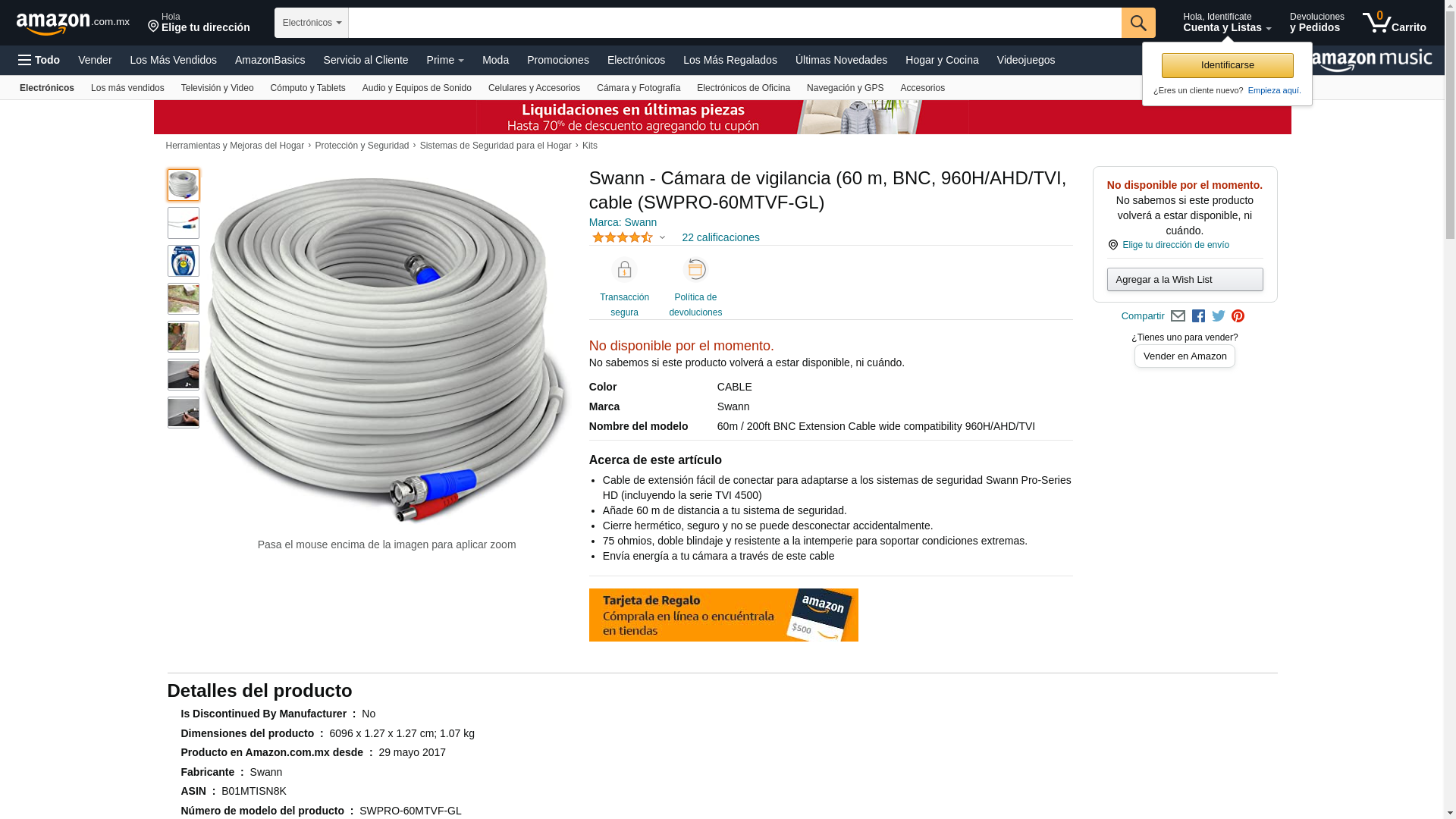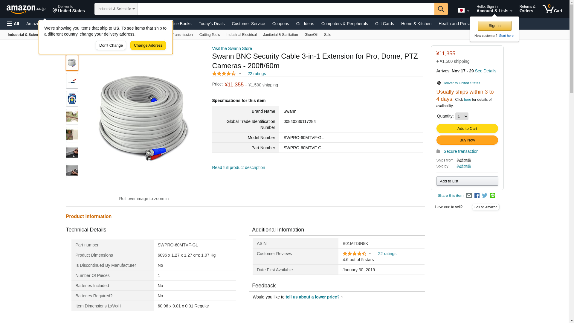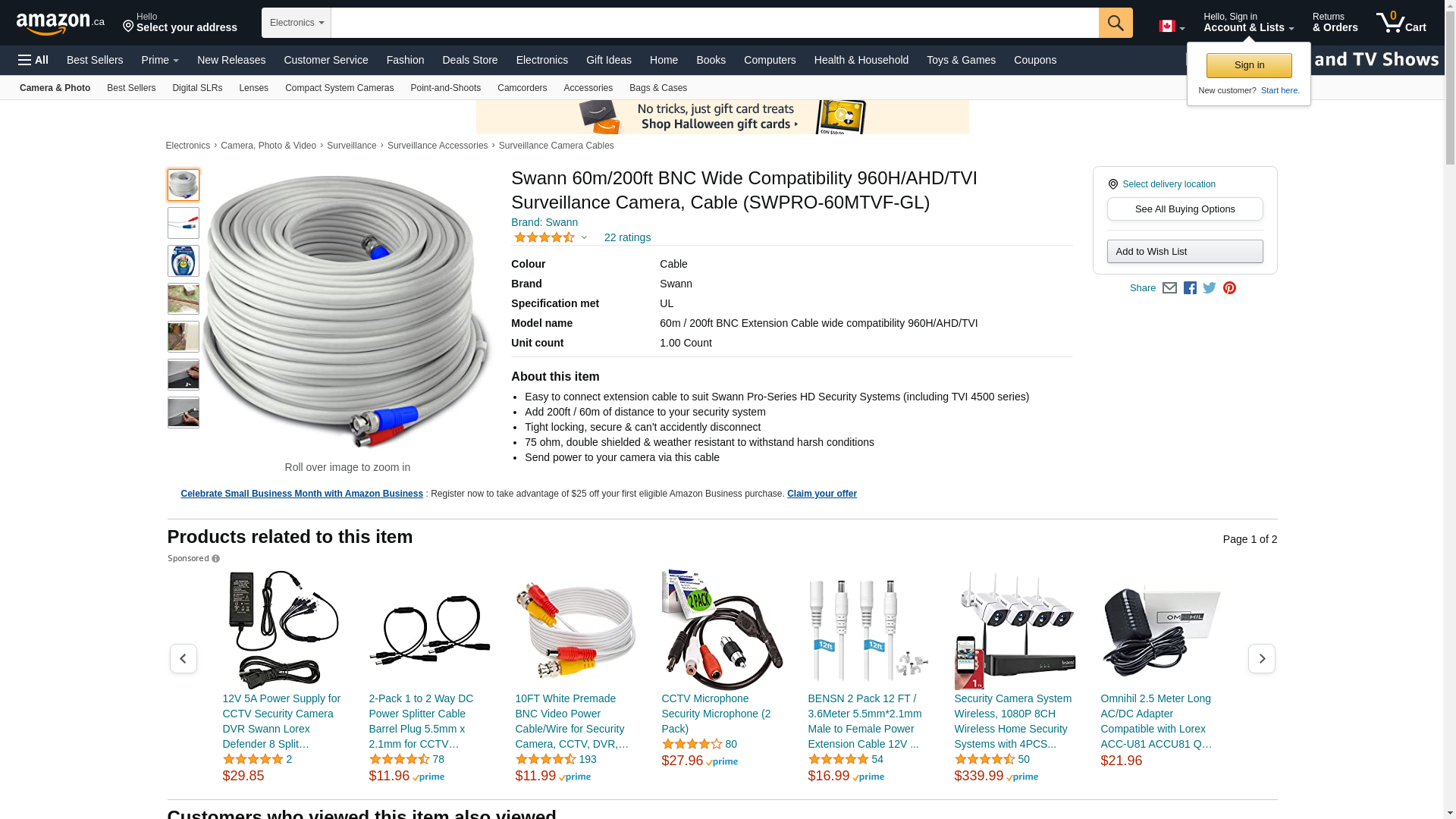 Swann 60m/200ft BNC Wide Compatibility 960H/AHD/TVI Surveillance Camera, Cable (SWPRO-60MTVF-GL)