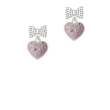 Silver Tone Pink Resin Heart with Crystals in Frame White Bella Bow Crystal Earrings. Silver Tone Charm. Charm size is approx. 0.64 x 0.59 x 0.23 inches (HxWxD) including loop. Bella Bow Earrings are approx. 11 x 13 x 3 mm (HxWxD). Bella Bow Earrings come with steel post and friction back. Many believe bows signify femininity and love. Bows can also signify specialty as they have been used to embellish gifts which we give to our loved ones. Bows are associated with the joy of giving and sharing. Featured item is an exclusive Delight & Co. design. We are a family owned company for over 35 years in the U.S.A. PLEASE NOTE: Our products are lead safe, but are not intended for children 14 years and younger.
