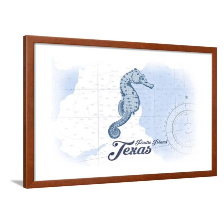 <ul> <li>Title: Padre Island, Texas - Seahorse - Blue - Coastal Icon</li> <li>Artist: Lantern Press</li> <li>Paper Type: Art Print</li> <li>Product Type: Framed Art Print</li> <li>Framed in SOHO Pecan</li> <li>Arrives ready-to-hang for fast, simple installation</li> <li>Framed Size: 38x26 in.</li> <li>Handcrafted in the USA</li> </ul>