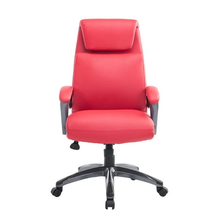 Reach new heights of productivity with the HomCom High Back PU Leather Ergonomic Executive Office Chair. It's designed for premium comfort and long periods of sitting with 360 degrees of swivel movement and an adjustable height. The durable frame holds up to 265 pounds and smooth rolling casters allow for easy movement. Bring your productivity into top gear with a chair that brings out your very best performance. <br /> <br /> <b>Features:</b> <br /> - Ergonomic executive office chair upholstered in high-quality PU leather <br /> - Extra padded seat, back and armrest for added comfort and support <br /> - Pneumatic seat height, lift, tilt and arm adjustment, 360 degree swivel and smooth rolling casters <br /> - Heavy-duty 5-star wood base keeps the chair stable <br /> - Certifications: SGS, BIFMA <br /> - Assembly required <br /> <br /> <b>Specifications:</b> <br /> - Color: Red <br /> - Material: PU Leather, Plastic Frame, Sponge, Nylon <br /> - Overall Dimensions: 24.5"W x 18.75"D x 44.25"- 47"H <br /> - Seat Size: 20"W x 22"D x 4.5"T <br /> - Seat Height: 15"- 18"H <br /> - Back Size: 20"W x 30.25"H x 2"- 4.5"T <br /> - Wheel Size: 2" <br /> - Leg Length: 12.25" <br /> - Armrest Size: 15.75"L x 3"W x 11.5"H <br /> - Net Weight: 40.5lbs <br /> - Weight Capacity: 265lbs <br /> <br />