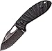 - 2.5-inch, 3.5mm thick full tang stainless steel drop point blade; black stonewashed finish