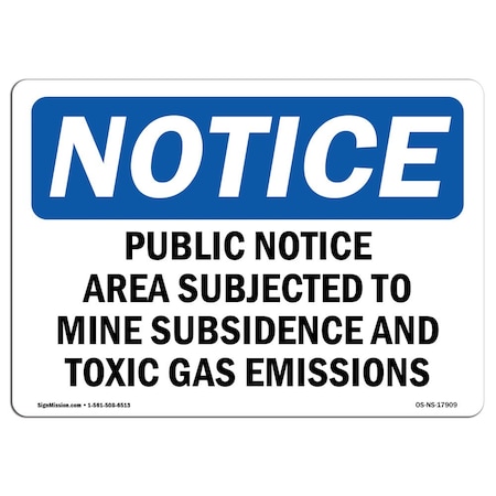 OSHA Notice Sign, Public Notice Area Subject To Mine Subsidence, 14in X 10in Rigid Plastic