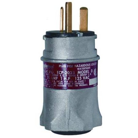 - <b>Price For:</b> Each <b>Material</b>: Copper-Free Aluminum <b>Standards</b>: UL 1203, UL 1010, UL 894, UL Listed for Class I, Division 1 and 2, Groups B, C, D; Class II, Division 1 and 2, Groups F, G; and Class III <b>Item</b>: Plug <b>HP</b>: 2 <b>Amps</b>: 20 <b>Voltage</b>: 240VAC <b>NEMA Type</b>: 6-20P <b>NEMA Rating</b>: 3, 3R, 7BCD, 9FG <b>Hz</b>: 60 <b>Number of Wires</b>: 2 <b>Number of Poles</b>: 3 <b>Country of Origin (subject to change)</b>: Mexico