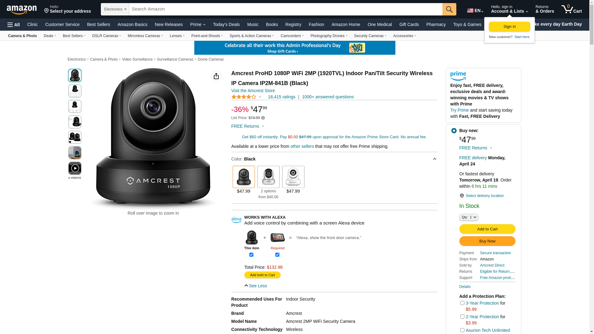 Amcrest ProHD 1080P WiFi Camera 2MP (1920TVL) Indoor Pan/Tilt Security Wireless IP Camera IP2M-841B (Black): Maxedbuy.com