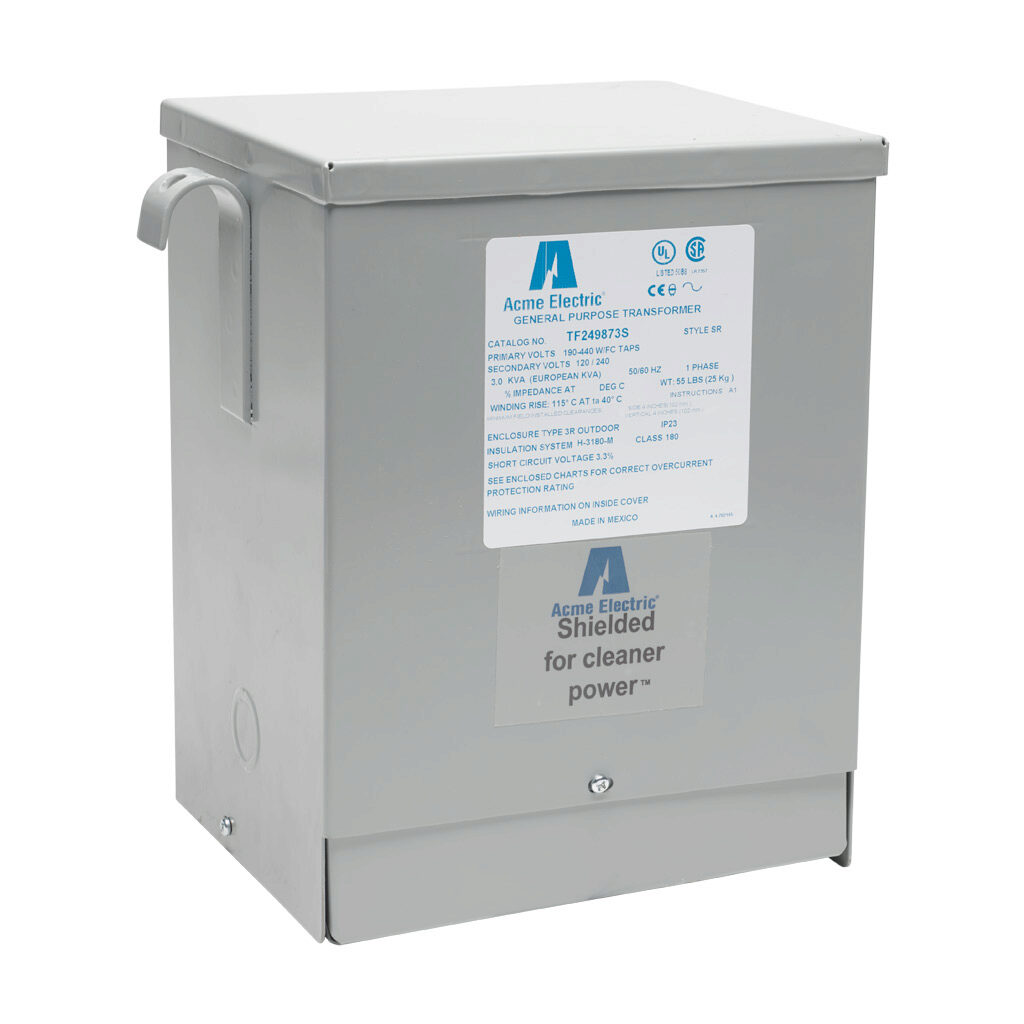Acme Electric TF249873S Distribution Transformer Export Model, Single Phase, 190V/200V/208V/220V x 380V/400V/416V/440V Primary Volts, 120V/240V Secondary Volts, 3 kVA
