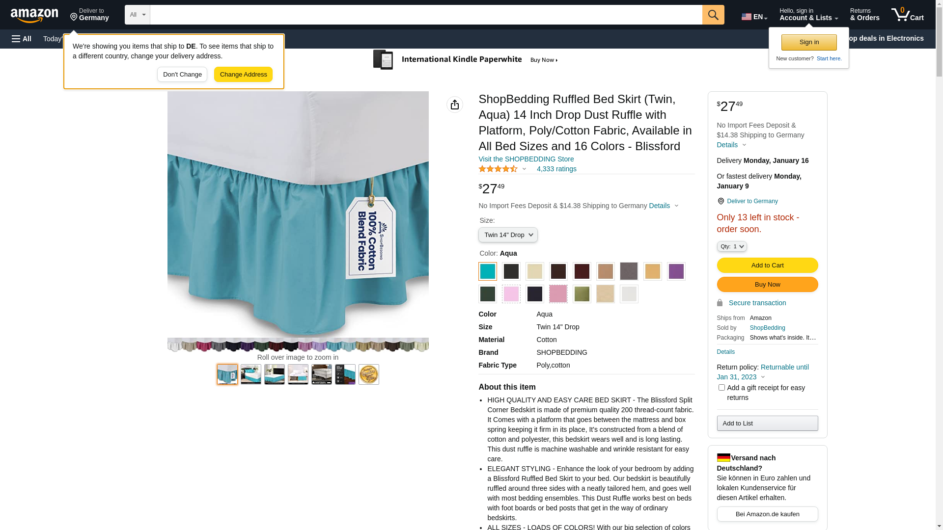 - ALL SIZES - LOADS OF COLORS! With our big selection of colors you can choose one for every room of your home, and match any decor. Choose from aqua, black, bone, brown, burgundy, camel, gold, grape, hunter, jewel blue, lavender, navy, pink, rose, sage and white bed skirt. We have all bed sizes, from a Twin Bedskirt to a Cal King Bed Skirt. Choose the one that fits your bed right.