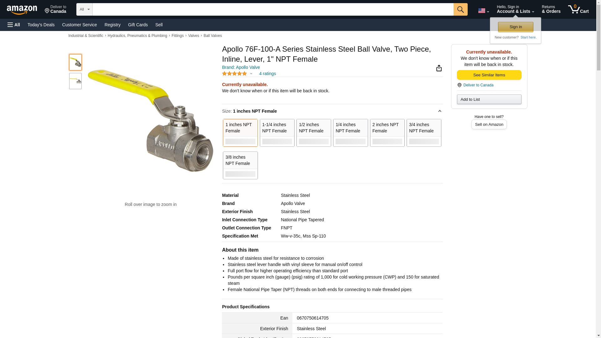 Conbraco 76F10501A | Conbraco 76F10501A Stainless Steel Ball Valve, Lever Handle, 1" NPT Female | AF Supply