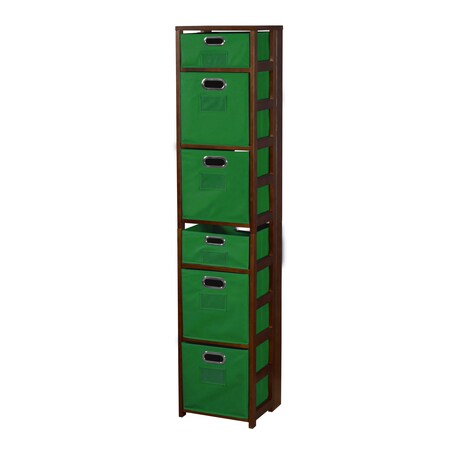 Niche Flip Flop Square Folding Bookcase and Canvas Storage Bins, 67", Mocha Walnut/Green