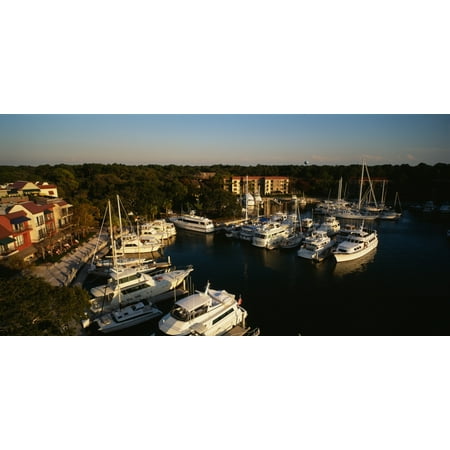 High angle view of yachts moored at a harbor Hilton Head South Carolina USA Poster Print