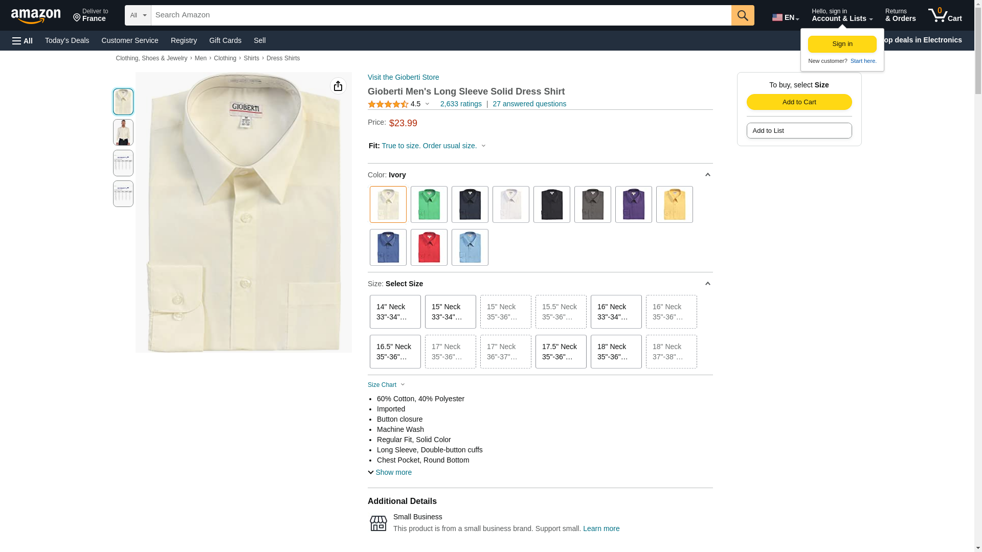 Gioberti Men's Long Sleeve Solid Dress Shirt, Ivory, 2X Large, Sleeve 37-38
