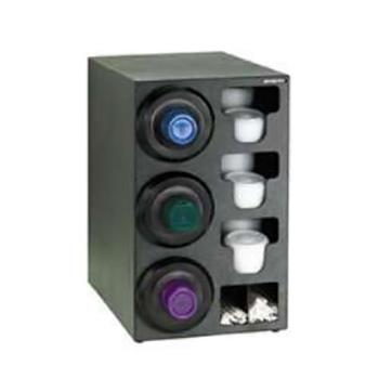 Dispense-Rite SLR-C-3LBT Countertop Cup Dispensing Cabinet with (3) SLR-2F Built-in Lid and Straw Organizer, Black Polystyrene