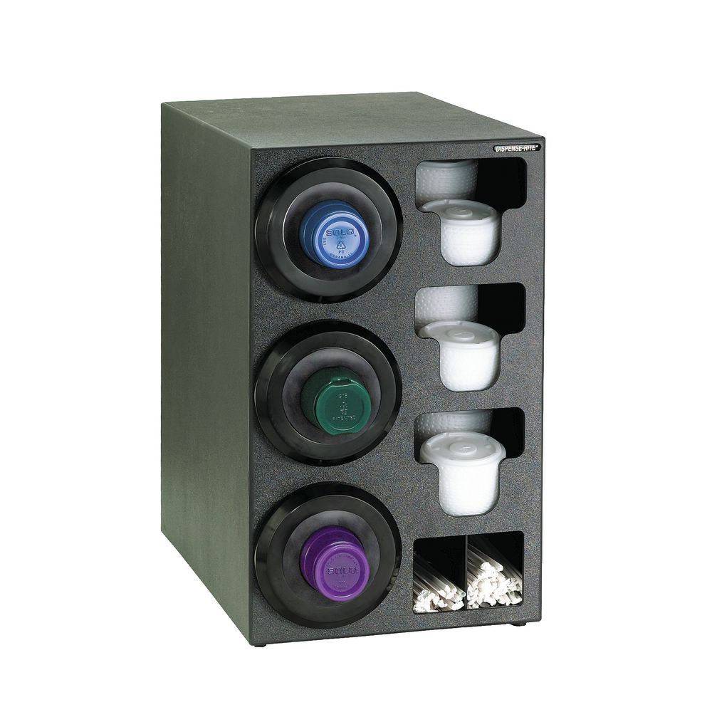 - STREAMLINED CUP DISPENING: The Dispense-Rite SLR-C-3LBT Countertop Cup Dispensing Cabinet with Built-in Lid and Straw Organizer provides a convenient and organized solution for dispensing cups, lids, and straws, ensuring efficient beverage service every time.