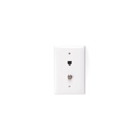 Leviton 40539-CMW Wall Plate & Connector, F Coaxial and Telephone Jack, 1-Gang, White