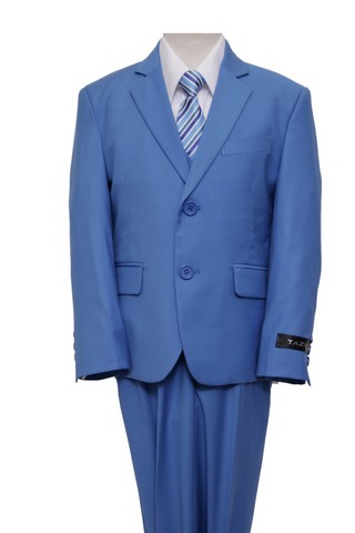 Mens Suits 2 Button Vested Notch Lapel Boys Suits Fench Blue - 6