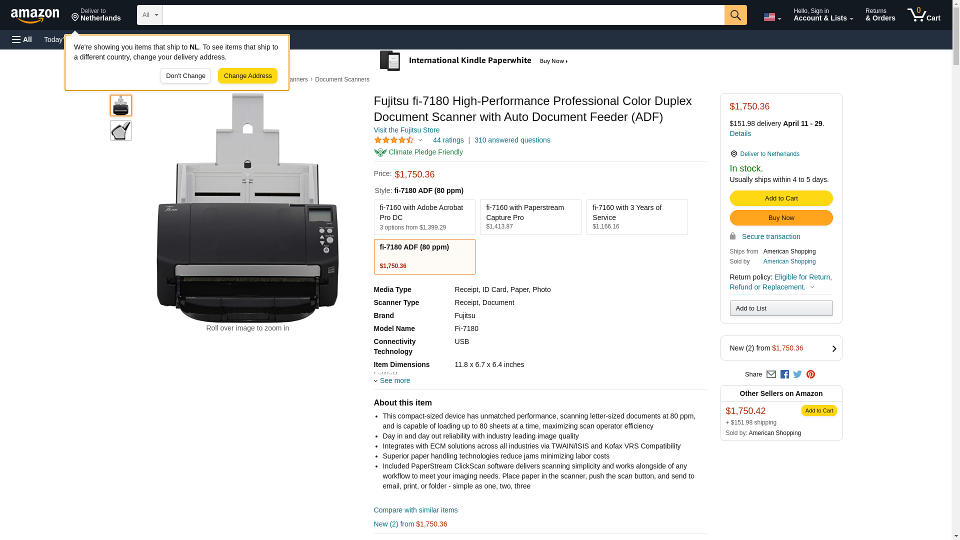 Fujitsu fi-7180 High-Performance Professional Color Duplex Document Scanner with Auto Document Feeder (ADF)